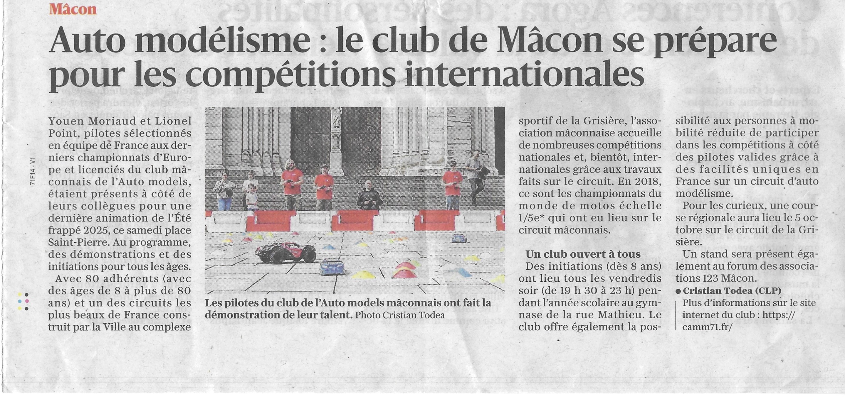 Afin de nous permettre de construire cette page, nous remercions tous les membres ou anciens membres du club de nous communiquer tous les éléments qu'ils pourraient avoir tels que photos, articles de presse etc.... à l'adresse suivante: histo@camm71.fr